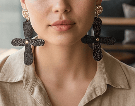 Shop handcrafted leather statement earrings made from premium cowhide by skilled Nigerian artisans. Available in [Color], lightweight, and perfect for any occasion.