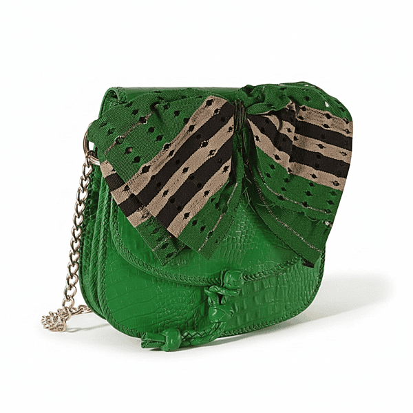 This green African leather and Aso Oke crossbody bag is ethically handmade in Nigeria using premium cowhide leather and traditional woven Aso Oke fabric. The result is a unique crossbody bag that celebrates Nigerian craftsmanship while fitting seamlessly into modern lifestyles.